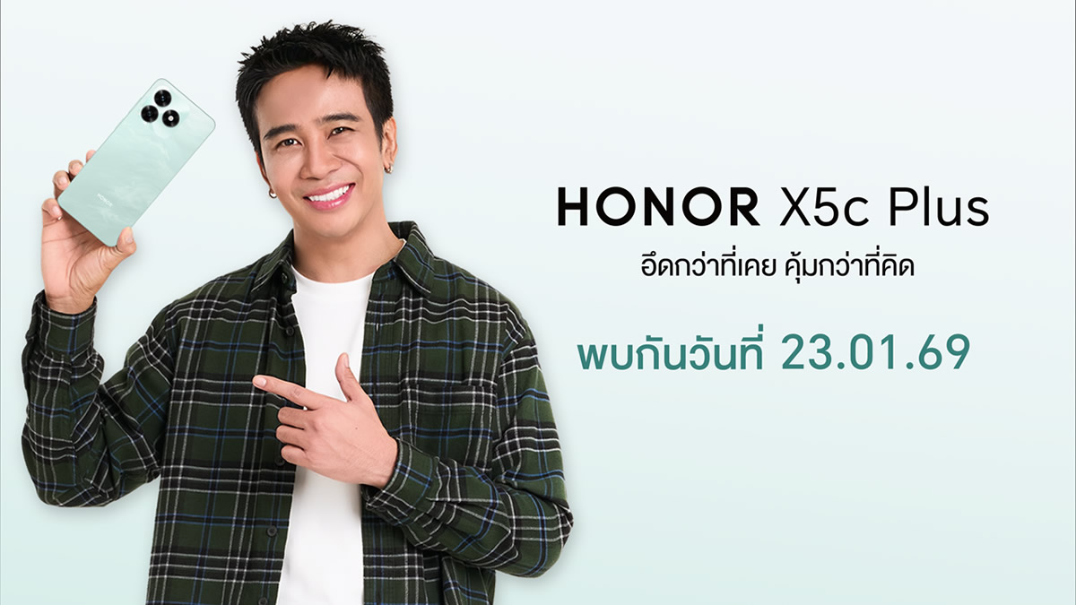HONOR X5c Plus พร้อมเปิดตัวและวางจำหน่ายอย่างเป็นทางการในประเทศไทยตั้งแต่วันที่ 23 มกราคม 2569 เป็นต้นไป ในราคาที่เข้าถึงได้ พร้อมโปรโมชันสุดพิเศษและสิทธิประโยชน์มากมาย เพื่อมอบความคุ้มค่าสูงสุดให้แก่ผู้บริโภคที่มองหาสมาร์ตโฟนคุณภาพในงบประมาณที่คุ้มค่า