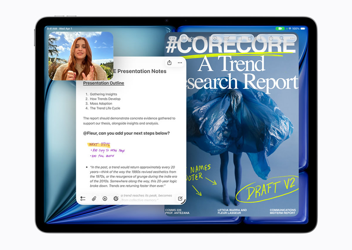 - ประสิทธิภาพที่เพิ่มสูงขึ้นอย่างมาก: ผู้ที่อัปเกรดจะเพลิดเพลินกับความเร็วและการตอบสนองที่ดียิ่งขึ้น ด้วยหน่วยความจำแบบรวม 12GB และแบนด์วิดท์หน่วยความจำที่ 120GB/s ทั้งยังจะได้สัมผัสประสบการณ์การจัดการหน้าต่างที่ลื่นไหลยิ่งขึ้นใน iPadOS 26 อีกด้วย ส่วนผู้ที่อัปเกรดมาจาก iPad Air พร้อมชิป M1 จะรับรู้ประสิทธิภาพที่เร็วขึ้น 2.3 เท่า พร้อมการเรนเดอร์งาน 3D ระดับโปรด้วยเรย์เทรซซิ่งที่เร็วกว่าเกิน 4 เท่าได้แบบเห็นๆ5