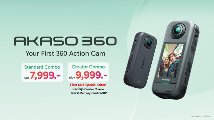 กล้อง AKASO 360 เปิดตัวและพร้อมวางจำหน่ายแล้วที่ BIG Camera, BaNANA, Power Buy, JIB สาขาที่ร่วมรายการ