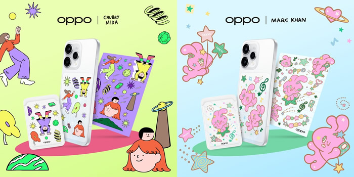 ความพิเศษในครั้งนี้ OPPO ได้จับมือกับ 2 ศิลปินไทย ได้แก่ คุณนิดา – Chubbynida เจ้าของคาแรกเตอร์เด็กหญิงผมแดงสุดยูนีคกับลายเส้นที่เป็นเอกลักษณ์ และ คุณมาร์ค – MARC KHAN เจ้าของคาแรกเตอร์กระต่ายสีชมพูที่โดดเด่นด้วยสไตล์สดใสขี้เล่น มาร่วมสร้างสรรค์ผลงานคอลแลปภายใต้ธีม “Young & Free” ที่ถ่ายทอดความสดใส และความรู้สึกเป็นอิสระในแบบของคนรุ่นใหม่ได้อย่างลงตัว
