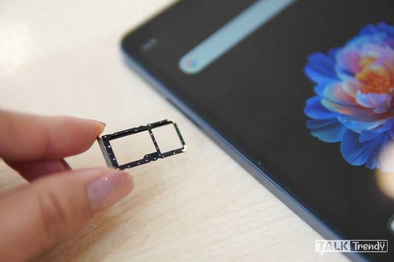 โดยที่ด้านซ้ายของตัวแท็บเล็ตจะมีช่องสำหรับใส่ซิมการ์ดมาให้ด้วย รับการใช้งาน 2 ซิมการ์ด และ 1 ช่องสำหรับ SD card ได้ที่ความจุสูงสุด 512GB