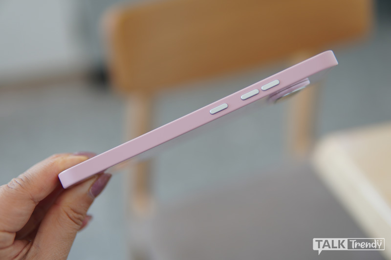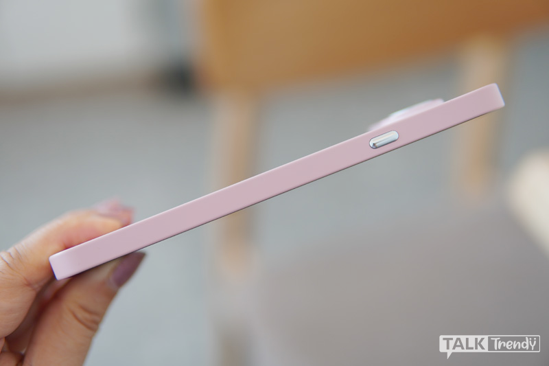 ผลการจัดวางพอร์ตต่างๆ รอบตัวเครื่องก็ทำได้อย่างลงตัว โดยที่ปุ่มปรับระดับเสียงและปุ่มเปิด-ปิดเครื่อง ถูกออกแบบให้เป็นสีเทาตัดกับตัวเครื่องสีชมพูได้อย่างสวยงาม ถูกวางไว้ที่ด้านขวาของเครื่อง