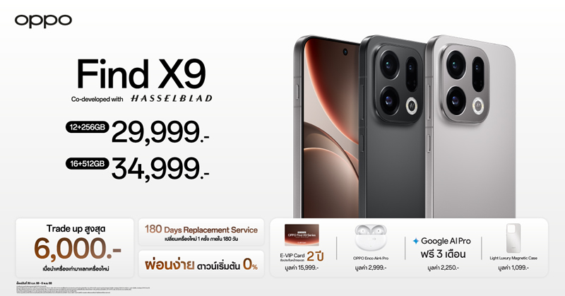 OPPO Find X9 Pro เรียกว่าเป็นสมาร์ทโฟนแฟล็กชิปที่โดดเด่นเรื่องของการถ่ายภาพ กับกล้อง 200MP Hasselblad Telephoto ที่ให้ภาพคมชัด และรองรับการใช้งานซูมได้สูงสุด 120x Super Zoom เหมาะกับคนชอบถ่ายคอนเสิร์ต และมาพร้อมประสิทธิภาพครบครัน หน้าจอใหญ่ สีสวยคมชัด และแบตฯ อึด ใช้งานได้ยาว 2 วัน