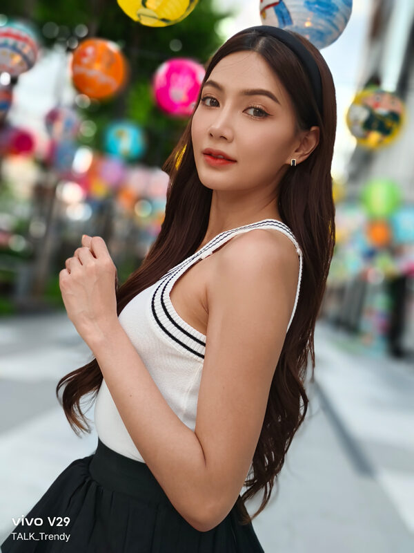 ในการถ่ายภาพพอร์ตบน vivo V29 5G ยังมีลูกเล่นให้ปรับแต่งหลากหลาย ทั้งการปรับค่ารูรับแสงได้ตั้งแต่ f/0.95 – f/16 พร้อมกับเลือกรูปแบบของโบเก้จากเดิมที่เป็นวงกลม ให้เป็นรูปหัวใจ ดาว ผีเสื้อ หรือซากุระ และยังปรับแต่งหน้าสวยไปได้พร้อมกัน ทำให้ได้ภาพพอร์ตเทรตที่สมบูรณ์แบบและมีลูกเล่นเพิ่มความโดดเด่นไปอีกแบบ