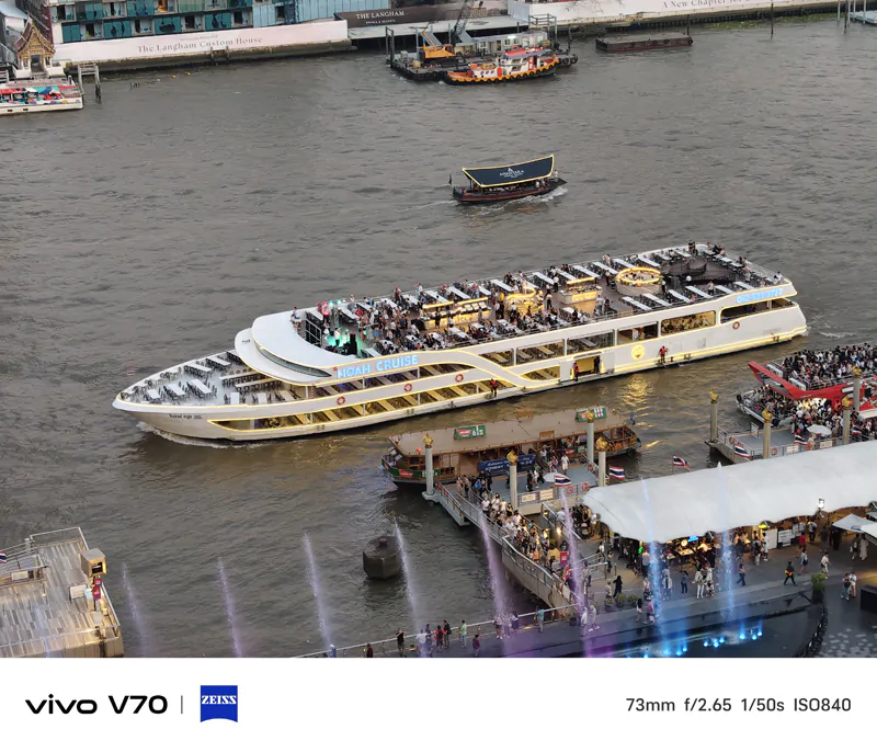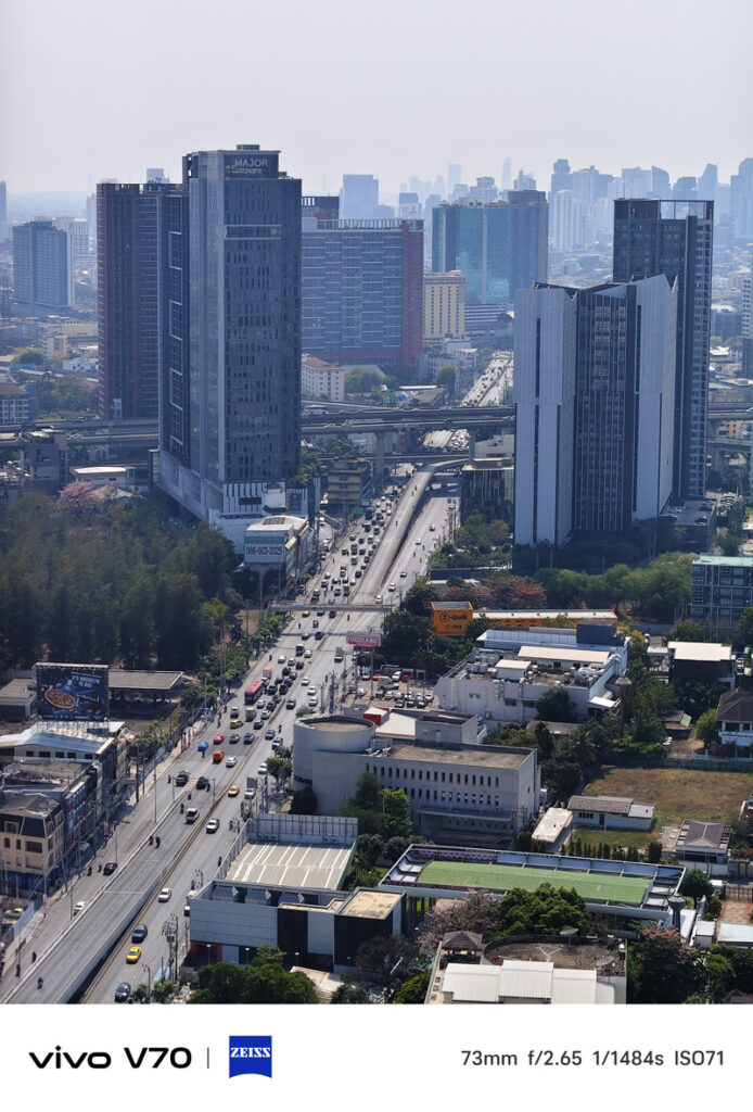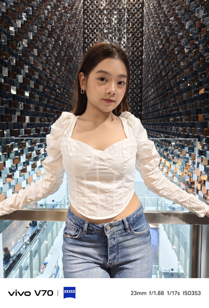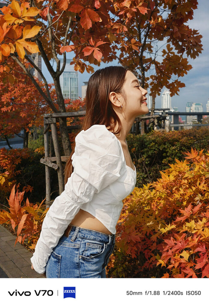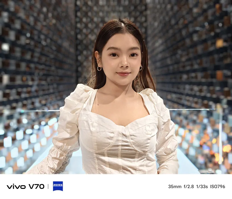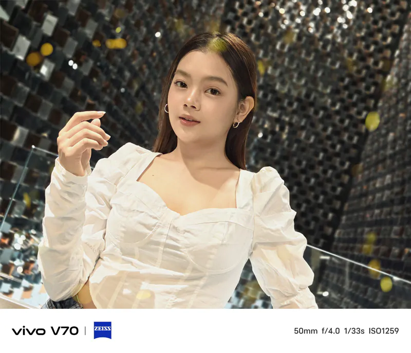 กล้องถ่ายภาพหลักของ vivo V70 มีความละเอียดสูงถึง 50MP สามารถเก็บภาพถ่ายได้ทุกสภาพแสง เพราะด้วยรูรับแสง f/1.88 ไม่ว่าจะเป็นแสงปกติ หรือในช่วงเวลาแสงน้อยก็เก็บภาพได้ทุกสถานการณ์ สีภาพที่ได้มีความเป็น ZEISS ให้สีสันสดใส ภาพที่ได้มีความละเอียดคมชัด