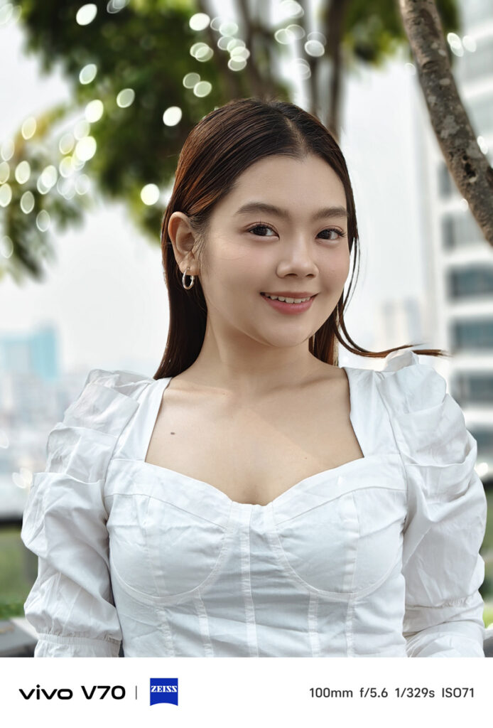 อีกหนึ่งจุดเด่นของ vivo V70 ก็จะเป็นเรื่องการถ่ายภาพพอร์ตเทรตได้ในระดับโปร ด้วยกล้อง 50MP ZEISS Super Telephoto เสกทุกช็อตได้เหมือนลูกรักพระเจ้า มาพร้อม 5 ระยะยอดฮิต ตั้งแต่